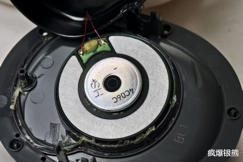 暴力拆开振膜,内部采用了红铜线圈,超强钕铁硼永磁铁。