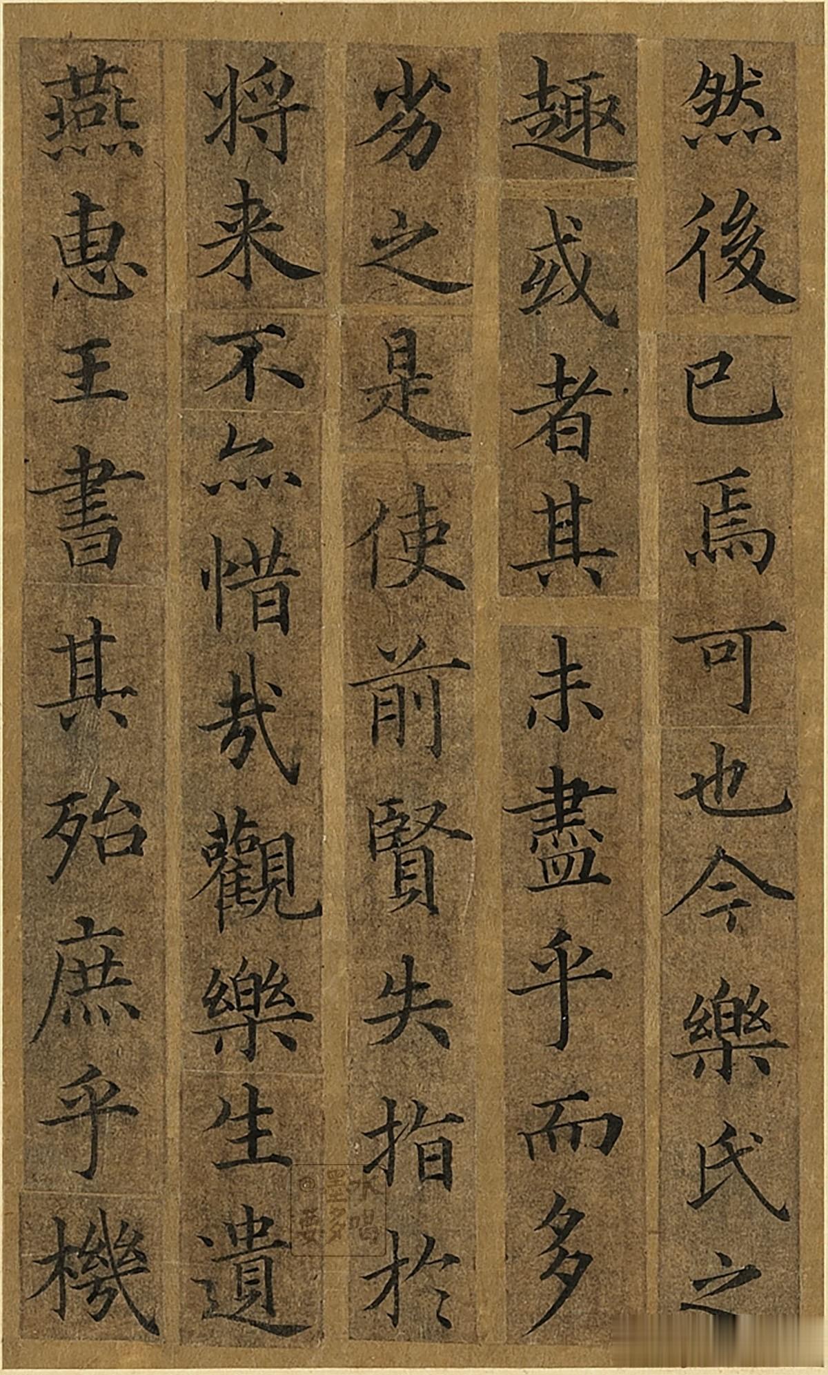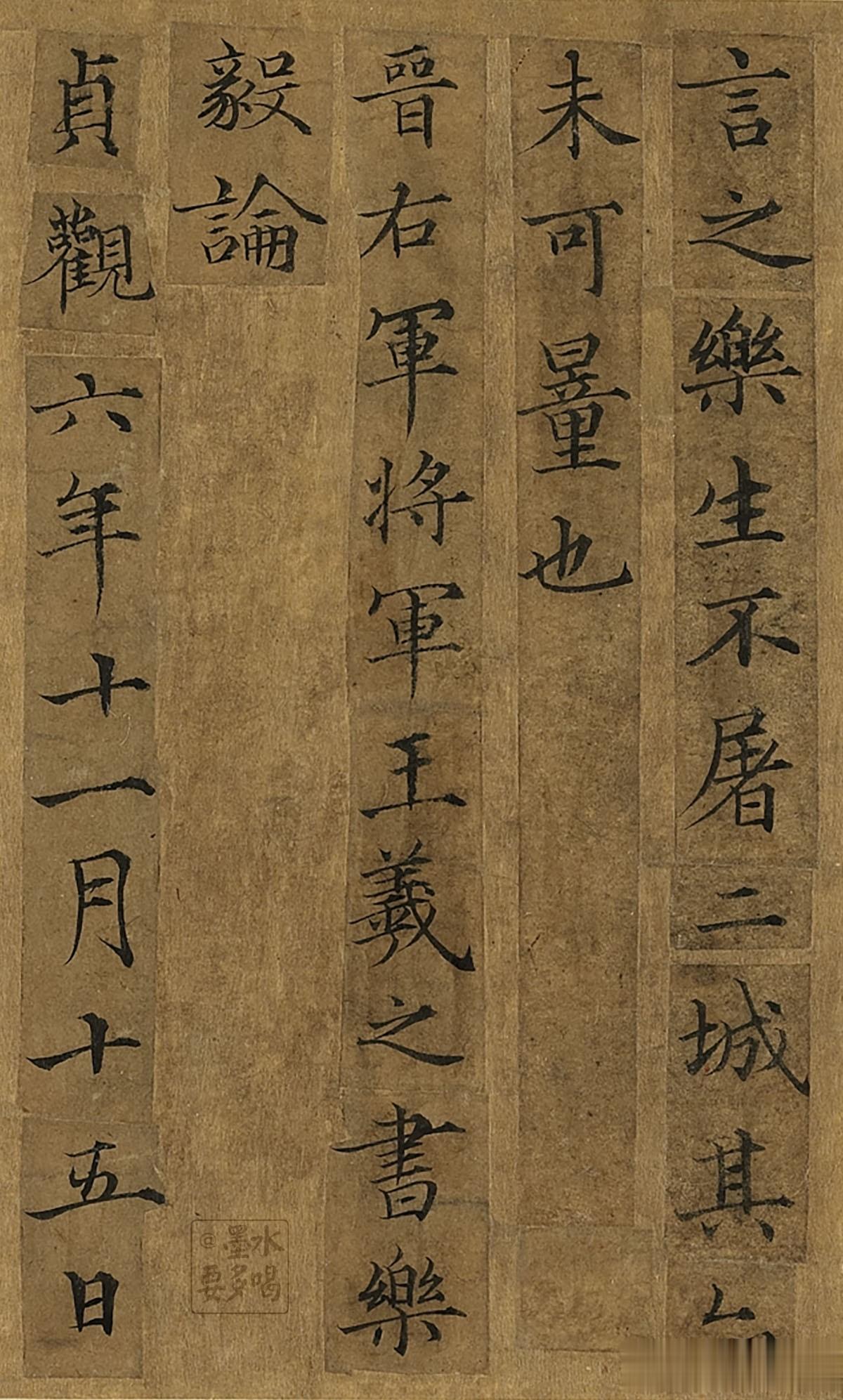 据记载,唐太宗时期褚遂良亲自鉴定过王羲之的《乐毅论》真迹,并摹六本传世。