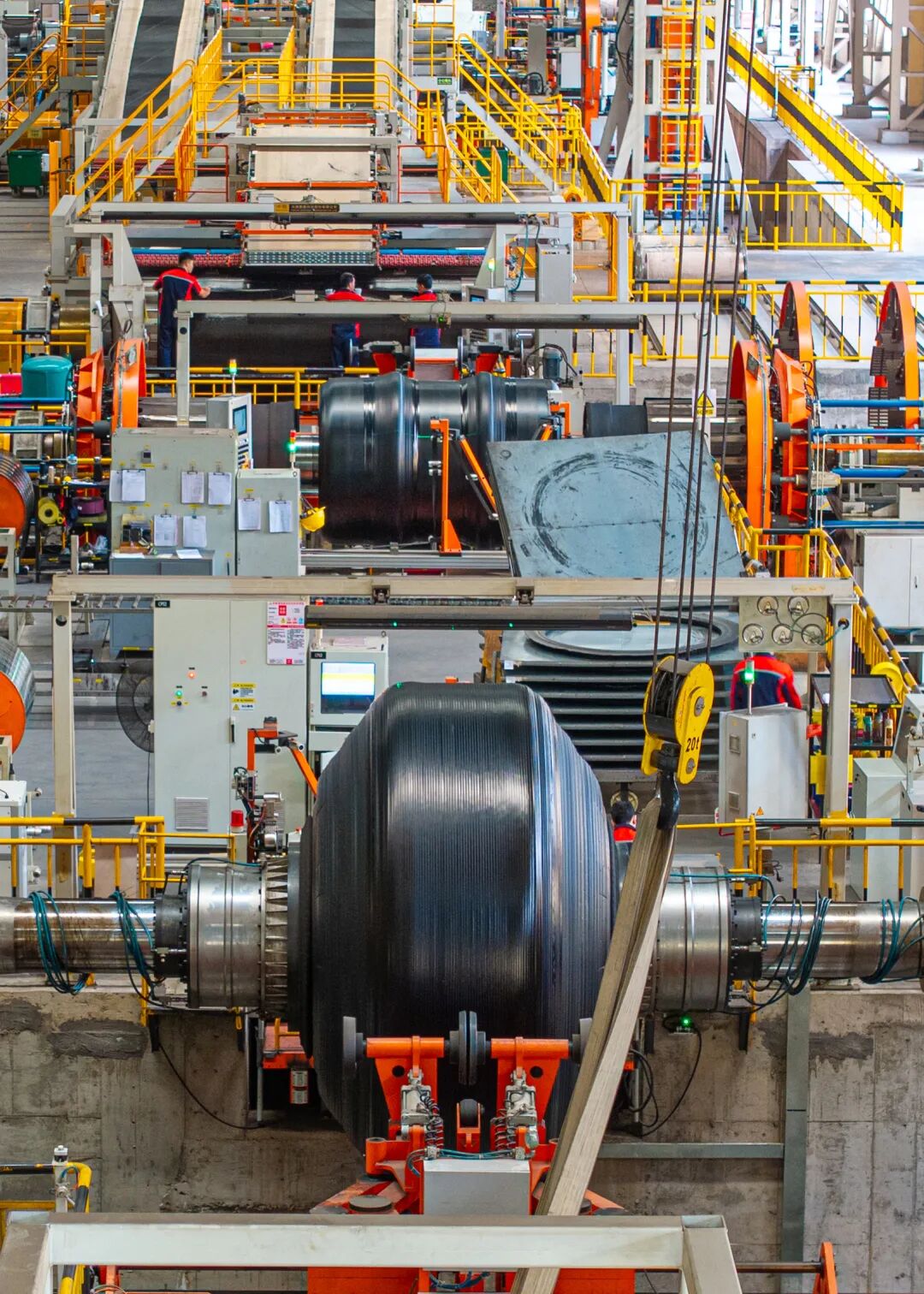 2015年,海安橡胶成功研发出59/80R63规格全钢巨胎产品——这是目前全球应用的最大规格型号全钢巨胎。