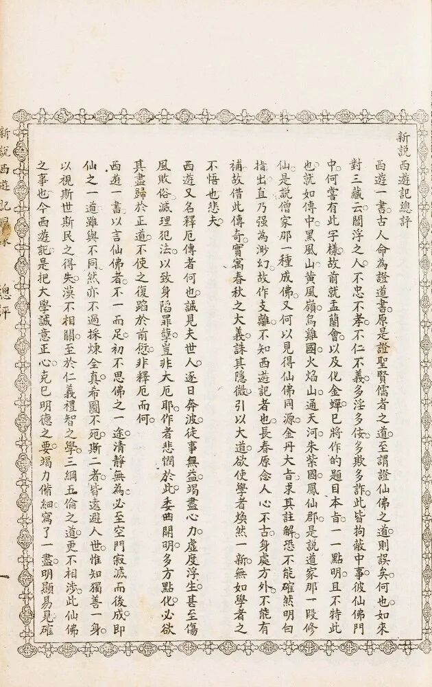 此书由来已久,读者茫然不知其旨。虽有数家批评,或以为讲禅,或以为谈道,更又以为金丹采炼,多捕风捉影,究非《西游》之正旨。将古人如许之奇文,无边之妙旨,有根有据之学,反目为荒唐无益之谭,良可叹也!