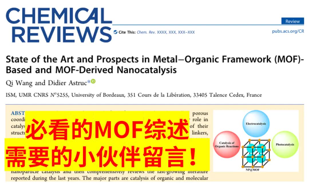 该综述是关于金属−有机框架(MOF)纳米催化剂及其衍生材料在催化领域应用的综述文章。