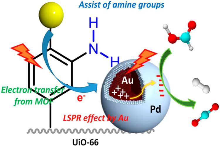 图2:功能化UIO-66 MOFs上Au@Pd NPs在可见光下催化甲酸生产H2 DOI:10.1021/acsenergylett.6b00558