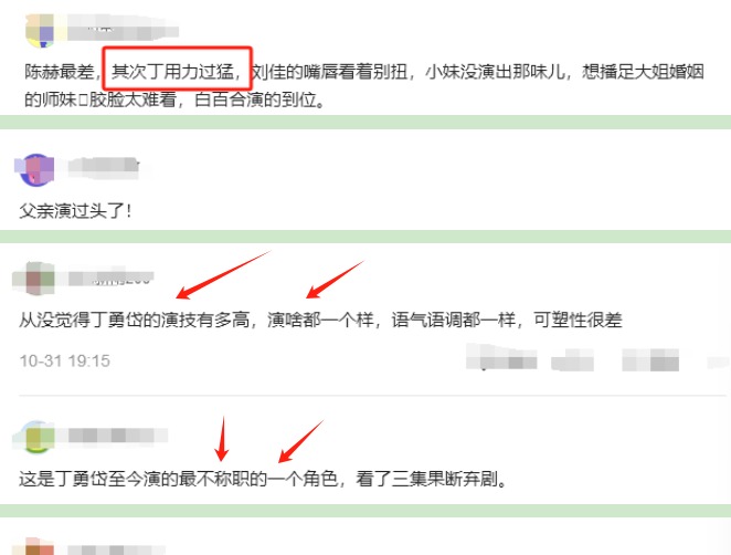 另一位“老戏骨”丁勇岱,则被批评“千篇一律”。