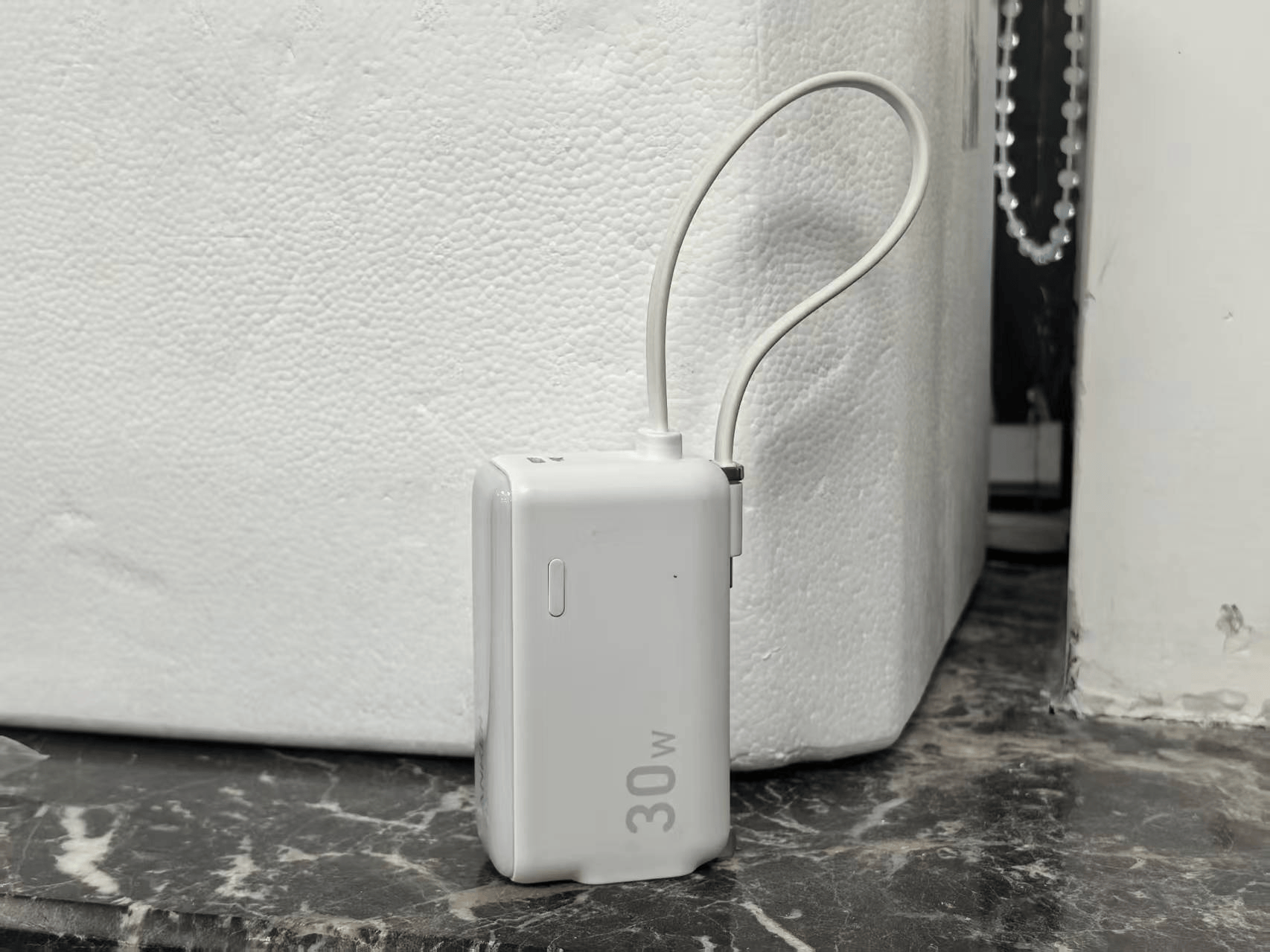 安-克这款充电宝最值得说的就是它的三合一设计了。底部可拉出插座,集自带线、充电宝、充电器于一体。整体无多余冗余结构,机身小巧精致,重量适配日常携带,握在手里扎实,放口袋不会累人。自带 Type-C 或 Lightning 线,免去额外带线的麻烦,兼容苹果、安卓设备。电池容量 5000mAh,虽容量不大,但支持 30W 快充,能满足手机和小型平板的应急续航需求。