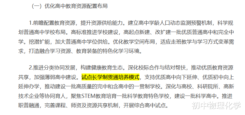 简单说,就是部分优质学校打通初高中,让课程衔接更自然。
