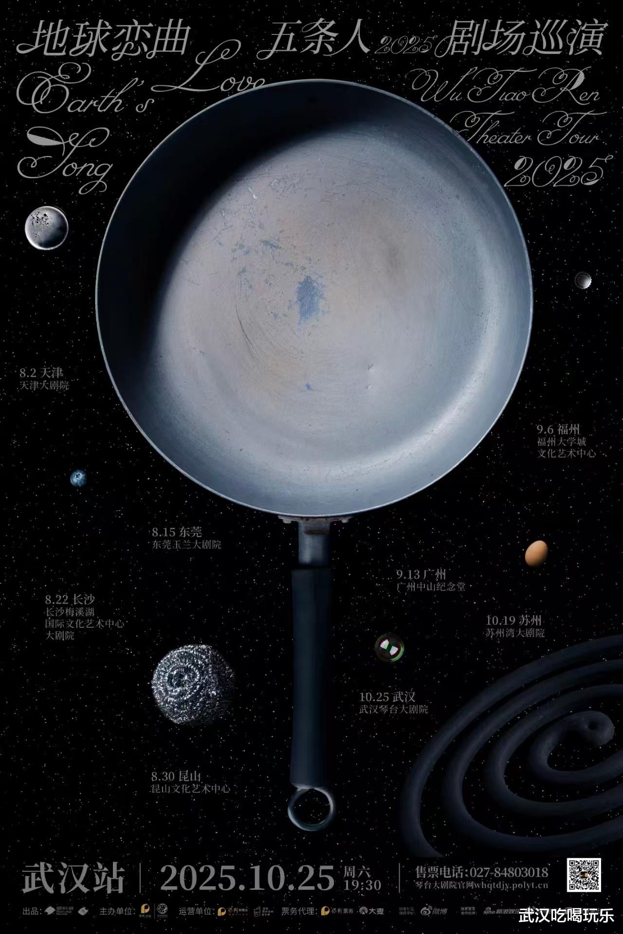 在今年第十四届琴台音乐节中,以九人编制构建“地球剧场”,以塑料袋为浪漫符号,将市井生活谱成诗篇的知名乐队五条人,将于10月25日晚7:30在武汉琴台大剧院带来其全新“宇宙级浪漫企划”——「地球恋曲」剧场巡演。这场演出标志着五条人成立近十年来首次大规模剧场巡演的全新启航,将以更丰富的音乐语言和舞台呈现,为观众搭建一个充满诗意与想象力的“地球剧场”。