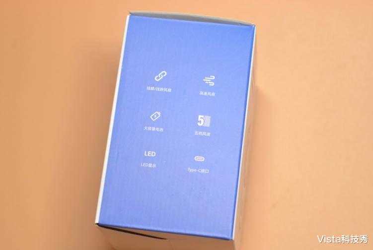 西圣高速挂腰风扇外包装延续了西圣品牌一贯的蓝白设计,包装简洁清新,正面的渲染图就可以看到这款风扇的独特外形,从侧面可以看到这款风扇的几大特性:挂腰/挂脖风扇、高速风扇、大容量电池、五档风速、LED显示、TYPE-C接口。