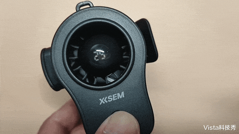 从西圣高速挂腰风扇背面可以看到精密设计的风道和五片涡轮扇叶,涡轮扇叶实际上采用了潜艇式螺旋桨叶片设计,通过风道吸入的空气集中压缩,送出高密度的冷气流,从而带来凉爽的清风,在高温环境下也可以感受到清凉的气流。