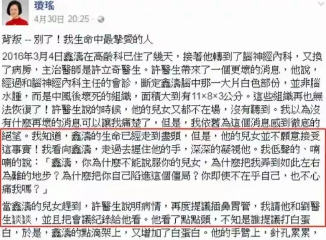 而且,林婉珍的三个儿女并没有在琼瑶去世后发文悼念,也没有出现在琼瑶的葬礼上。