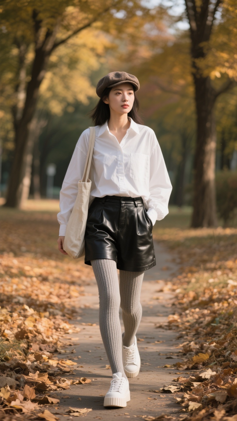 *白色厚底乐福鞋:时髦的韩系小姐姐风。