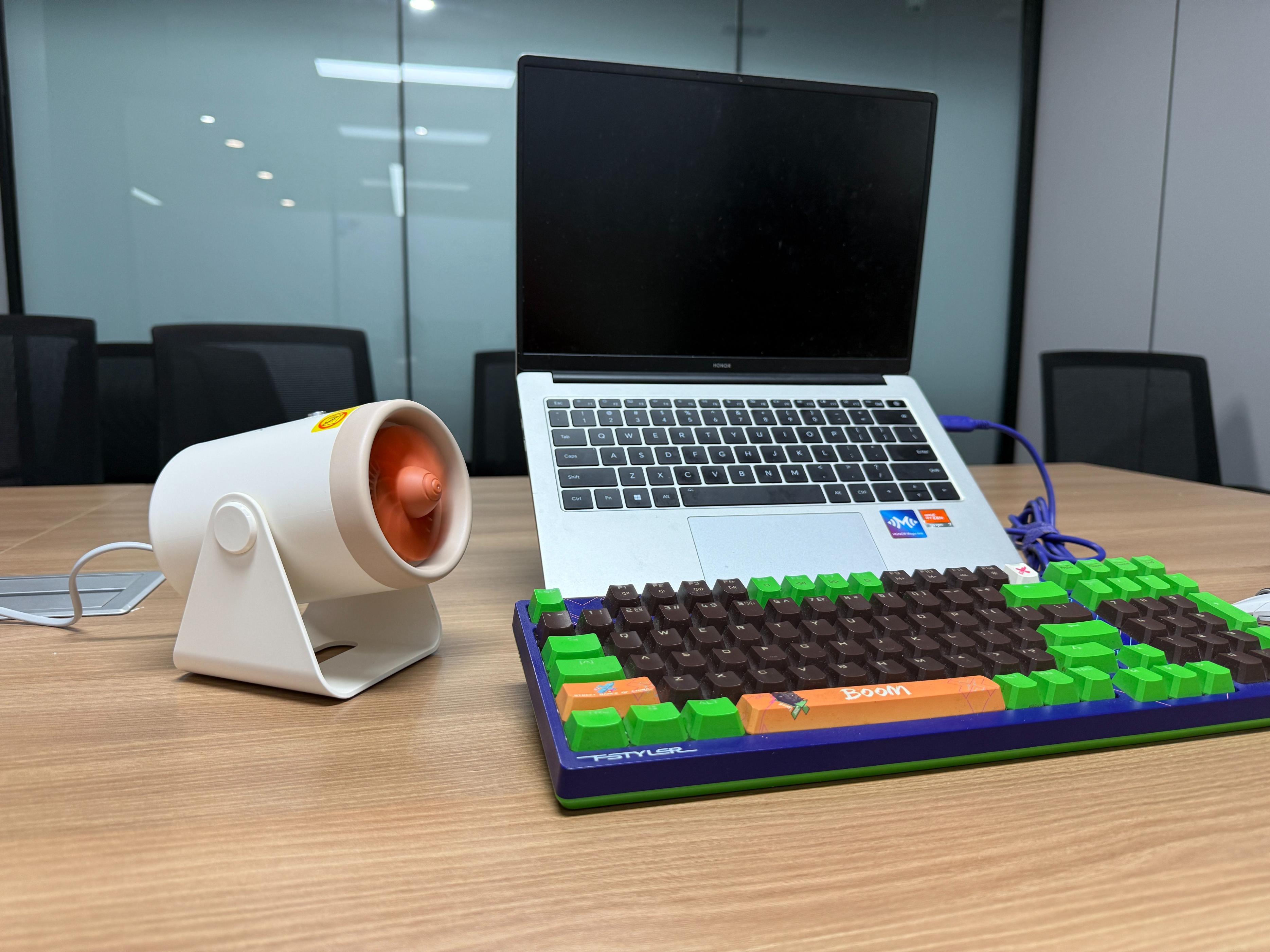 第一次拆开快递时,我差点以为收到了个咖啡杯——巴掌大的机身,磨砂质感的白色外壳,搭配一圈银色装饰环,科技感直接拉满。更绝的是,它真的和我的星巴克马克杯差不多大!现在每天上班,我直接把它塞进电脑包侧袋,到了公司往桌角一摆,瞬间成为整个工区的“时尚单品”。
