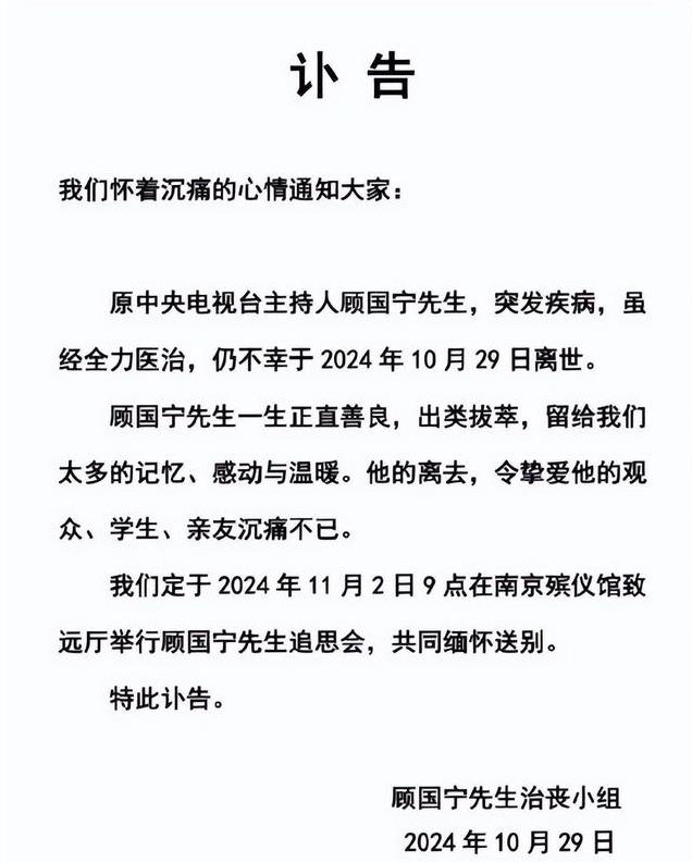 顾国宁也是一位热爱生活的优秀主持人,听闻他离世的消息大家也同样是十分的错愕,感到可惜的同时也十分不舍。