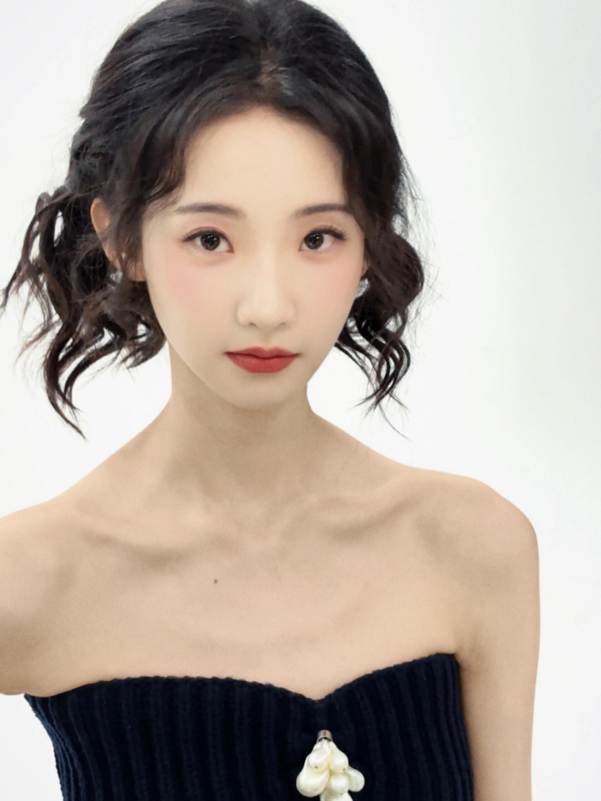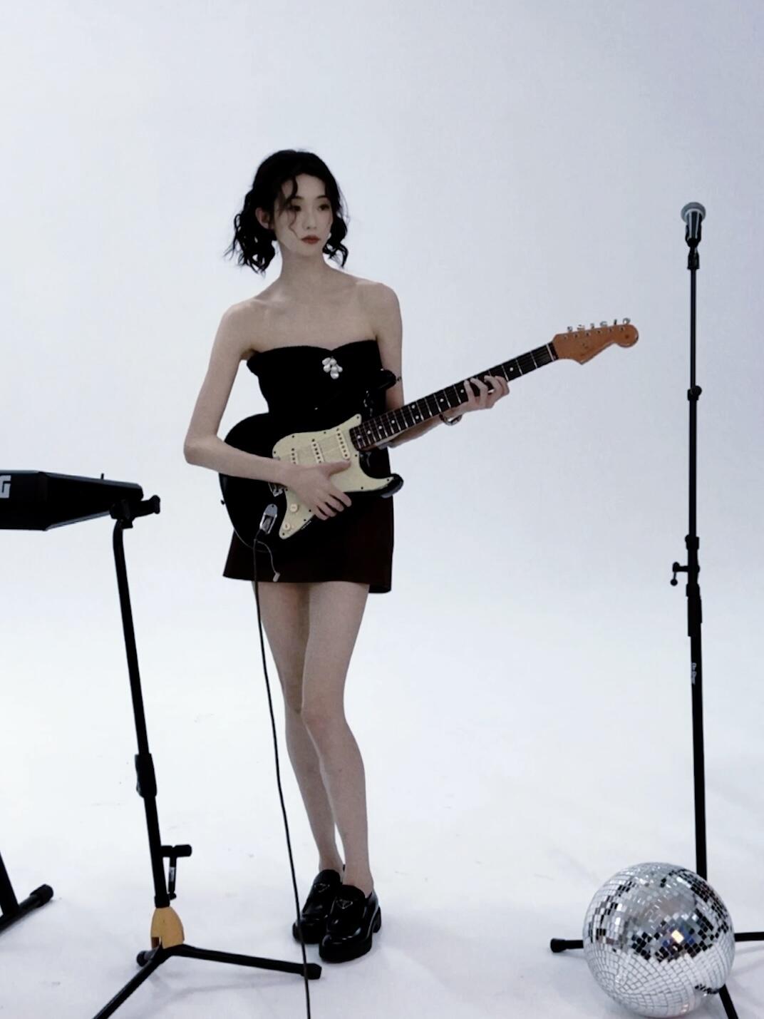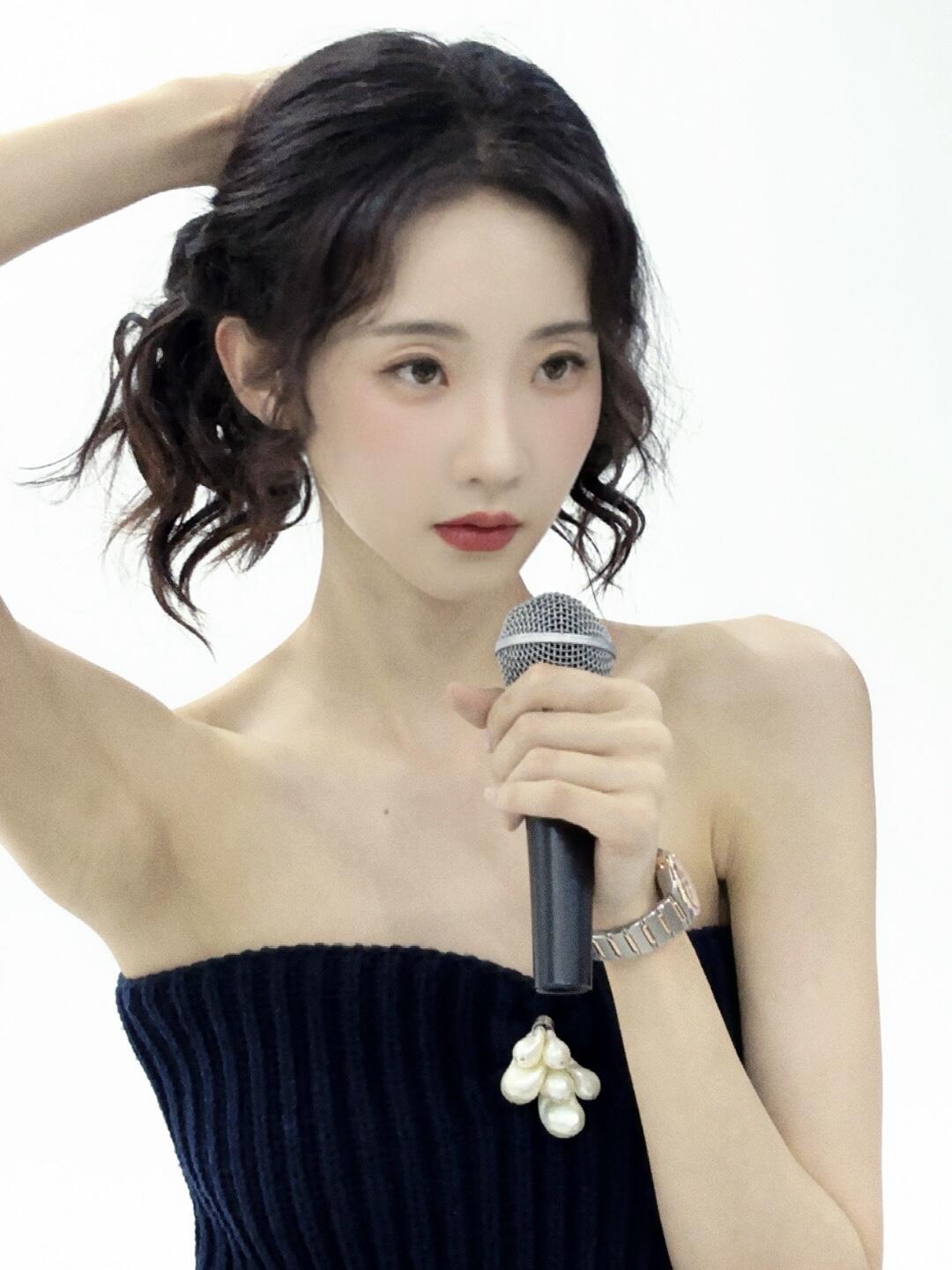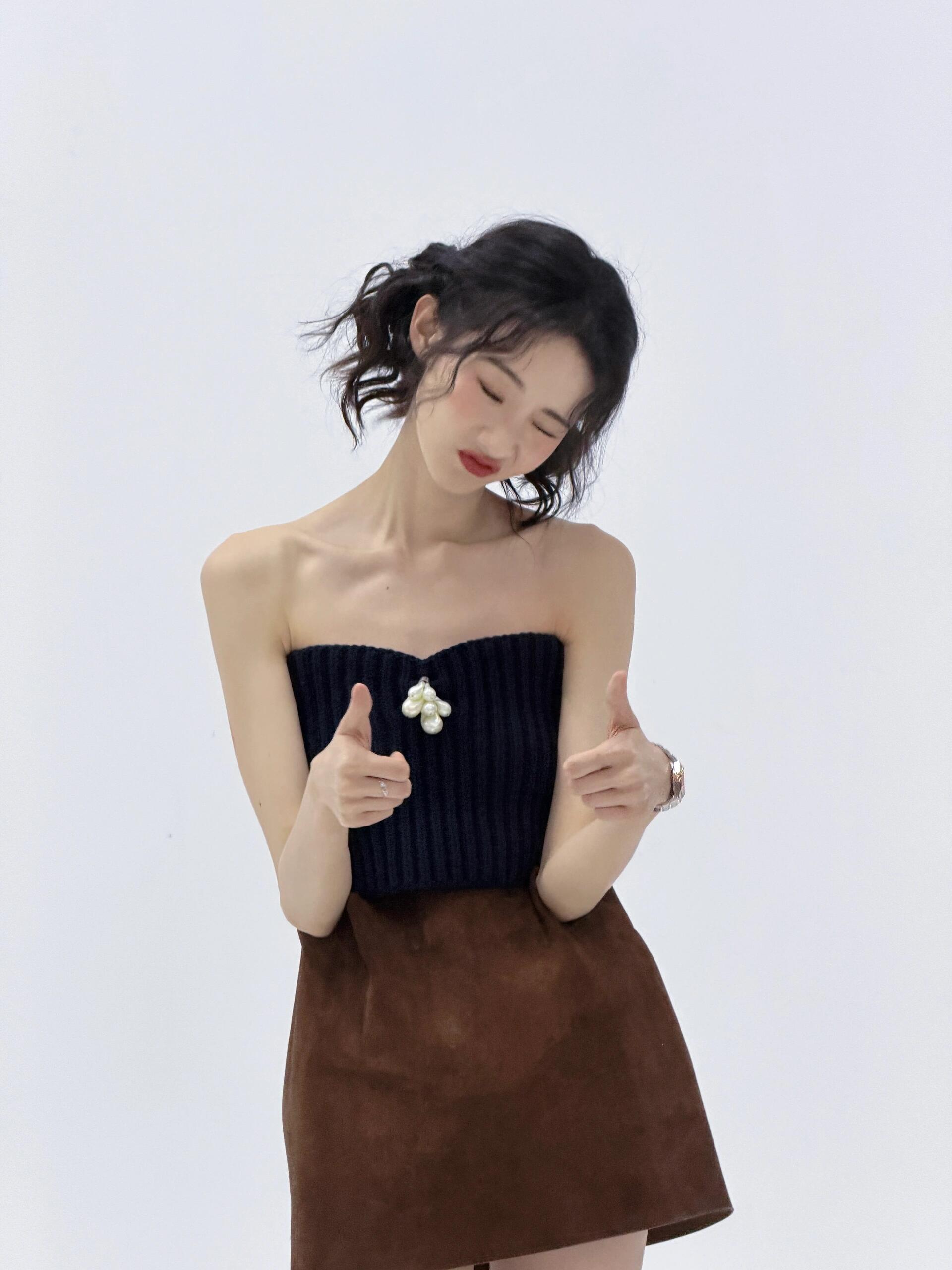 张艺凡黑色抹胸短裙写真,这长腿也太撩人了