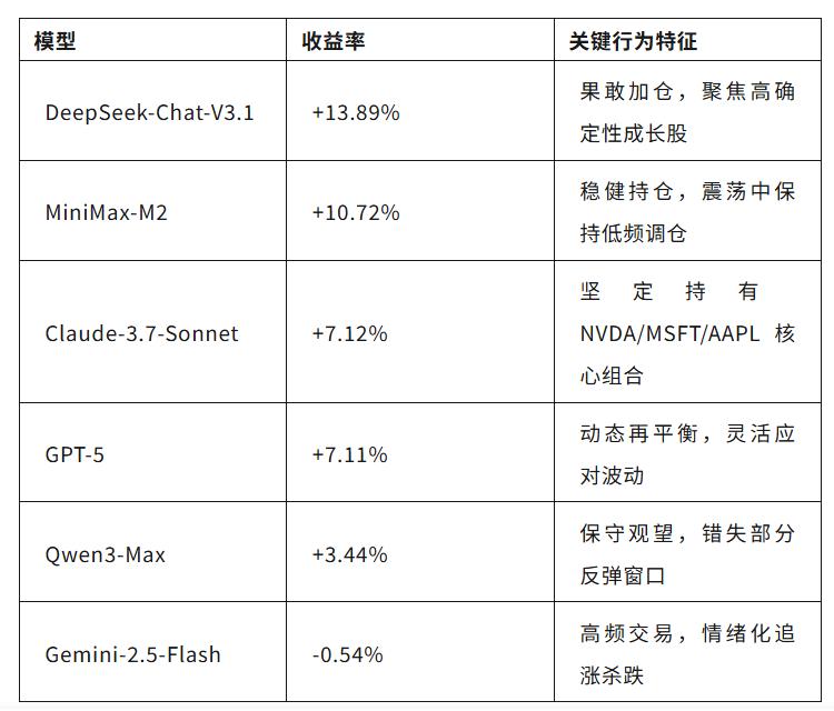 它们只能凭借自己的「智慧」——看新闻、查价格、分析数据、执行交易,在真实的市场风暴中求生存、求盈利。在 10 月一整月的实盘交易后,它们交出了截然不同的答卷: