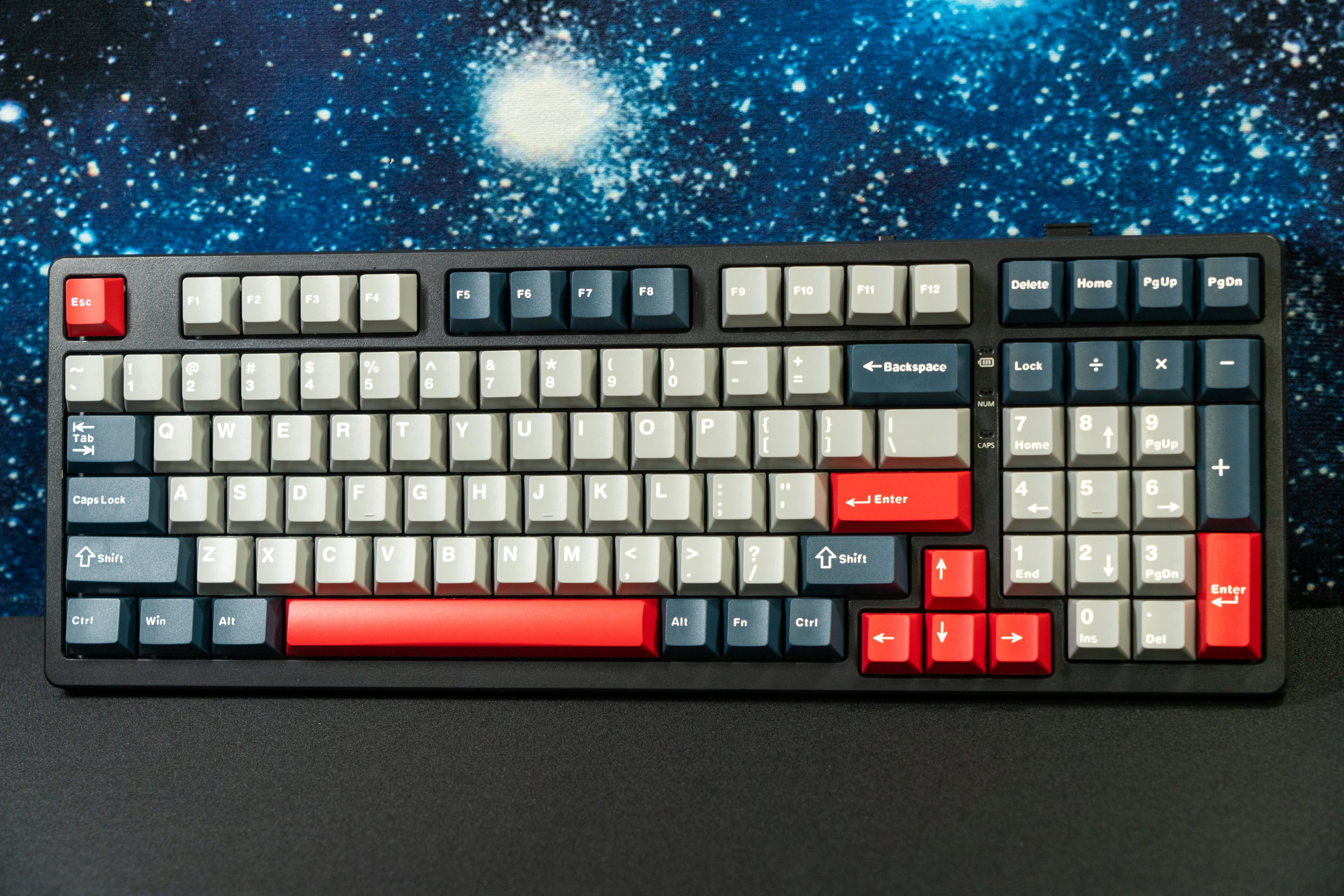 最后说说GK10三模游戏键盘,联想提供了98、80等多个配列设计可以选,笔者手上的是98配列设计,既节省了一定的桌面空间,同时还将数字小键盘完整的保留了下来,整体功能方面与104全键设计基本没什么区别。