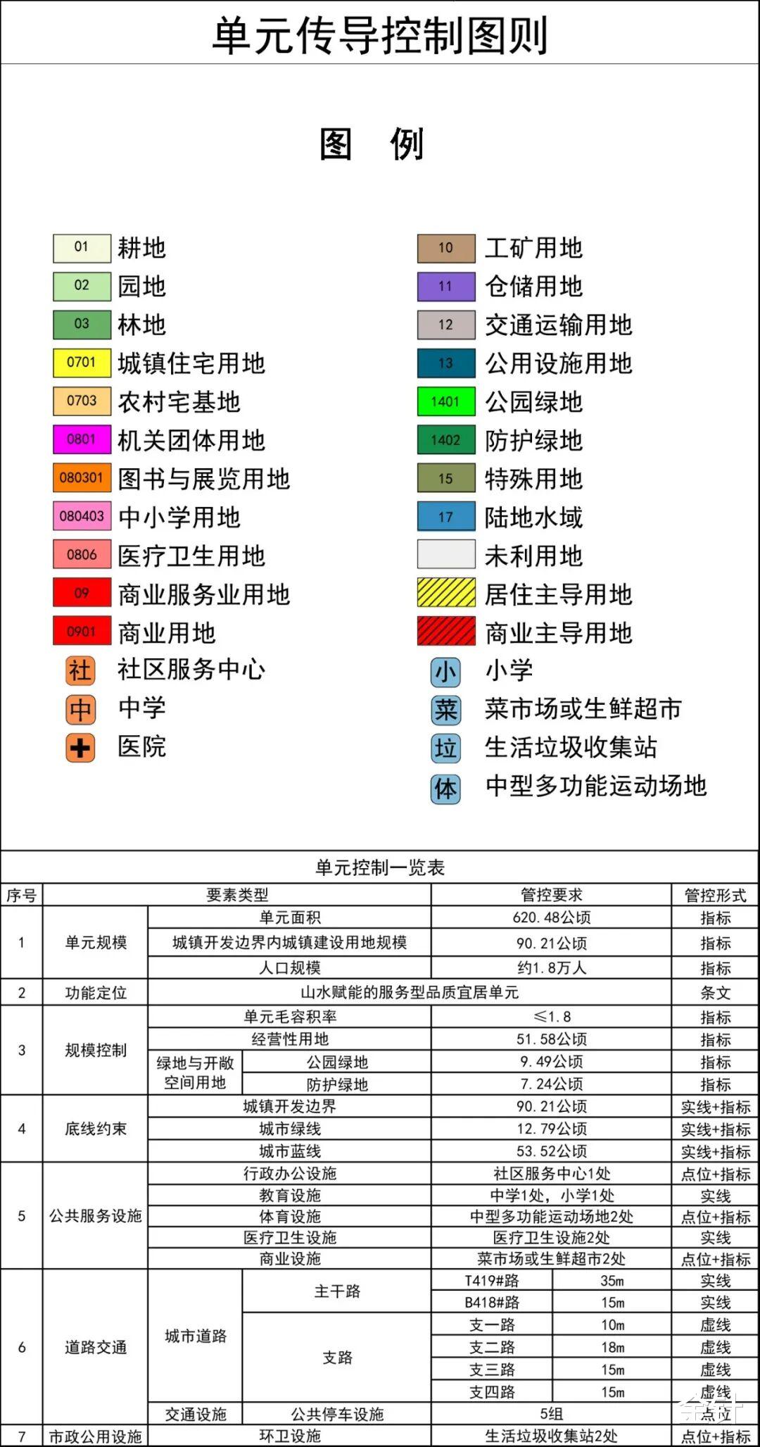 片区功能定位为:山水赋能的服务型品质宜居单元,人口规模约1.8万人。