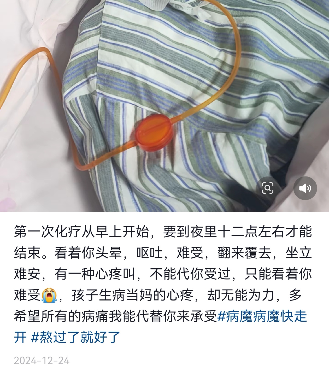 第一次化疗的痛苦,远超所有人的想象。从清晨 8 点扎上输液针,到深夜 11 点拔针,15 个小时里,周宇被剧烈的恶心感包裹,每隔十几分钟就冲进卫生间呕吐,吐到最后只能吐出黄绿色的胃酸,嘴唇干裂得渗出血丝。母亲守在卫生间门口,手里攥着纸巾和温水,每一次听到儿子撕心裂肺的呕吐声,心就像被针扎一样疼。她想替儿子承受这一切,却只能在他吐完后,轻轻帮他擦拭嘴角,柔声说 “再坚持一下,马上就好了”。