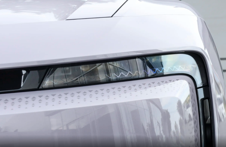前脸是最具辨识度的存在,封闭式前脸简约且富有科技感,正中间搭载会发光的英文车标,车标造型立体,整体被镶嵌在环状熏黑饰条,远近大灯巧妙融入其中,再加上熏黑饰条内侧还有一圈发光体,点亮之后高级感瞬间就来了。尾部也有同款设计,一共有942颗灯珠,引擎盖两侧分别加入筋线之后形成隆起型面,更具动感之姿。