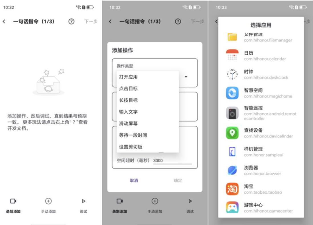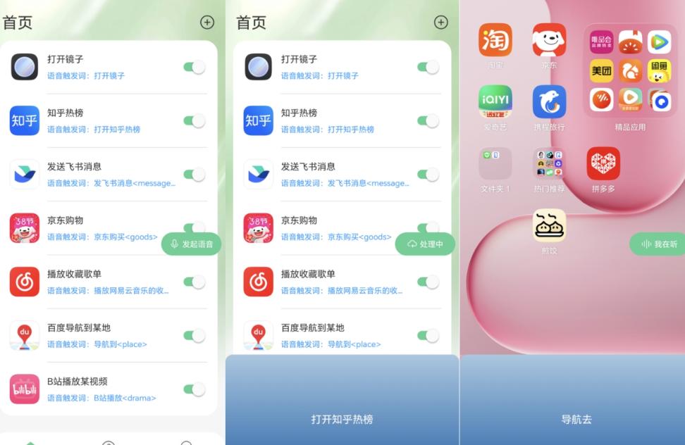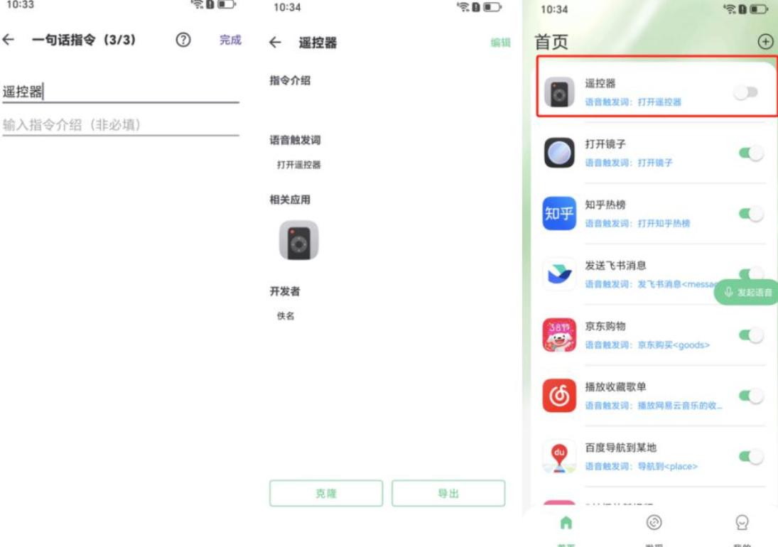 而且自定义设置的逻辑也就是和我们正常使用手机打开软件找到相应东西的路子基本一致。唯一的区别就是我们将这一系列动作转化成一个语音触发,成功设置完毕之后,后续只需要动动嘴就能实现一系列的自动化操作。