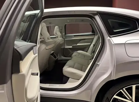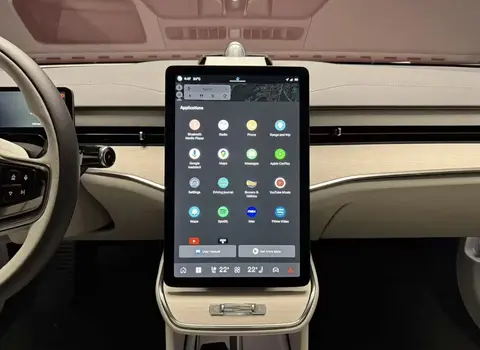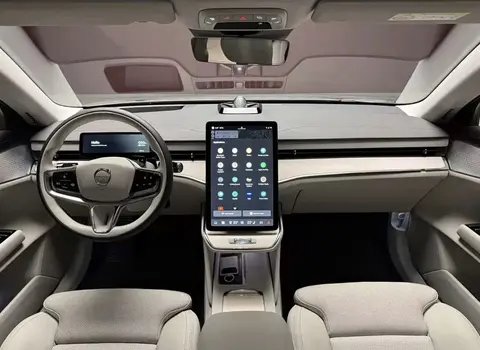 内饰延续北欧极简风格,采用环保织物与可再生木纹饰板,兼顾豪华感与可持续理念。核心是 One HMI 智能交互座舱,由 12.3 英寸全液晶仪表、14.5 英寸竖置中控屏与 13.2 英寸抬头显示组成三屏联动系统,中控屏搭载防眩光涂层与红外感应技术,戴手套也能精准操作。标配四区自动空调与负离子净化器,可通过手机提前启动座舱净化与座椅加热,25 支喇叭的 Bowers & Wilkins 音响系统与可调光全景天窗,进一步提升座舱沉浸感。