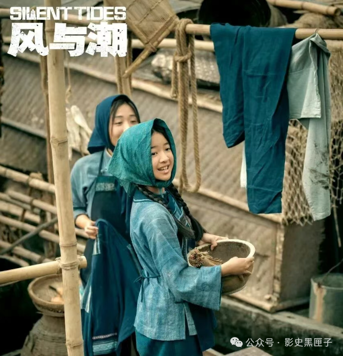 却是那双眼睛里映出的,既有深深的恐惧,又有难以掩盖的屈辱,但更多的是一股不肯低头的倔强的神色。“你叫什么名字?”何贤(任嘉伦饰)第一次见到她时问道。他却不予理睬,先用警惕的眼神对这陌生的面孔上下打量了一番才开了口。她的身体微微后倾,一只手不自觉地抓住破旧的衣角。直到何贤出面解围,放了被扣押的村民后,她才第一次露出笑容——不是那种夸张的大笑,而是嘴角轻轻上扬,眼里的冰霜瞬间融化成春水。采用仅靠眼神的微妙的交流和巧夺的微表情手段,便将这个转变完美的诠释了出来.。另一场戏中,村里组织为前线捐款。小渔捏着几枚被汗水浸湿的铜板,站在队伍末尾。轮到她时,她没有像其他人那样大步上前,而是微微偏着头,怯生生地将钱放进募捐箱。却像被点了名似的迅速收回了手,仿佛自己又做了什么不该做的事似的,心中也突然生出了一种莫名的惭愧的感觉。就如导演那一眼特意的对焦般,将那双满是老茧的劳苦的小手与她那又白又嫩的脸庞,用最鲜明的对比给了我们一记闷雷般的打击:人生从何时起,就已把她拉入了如此不相称的两线之间了?。她那早熟的眼神、苦难中仍能保持的孩童般的善良,都让无数的观众在这一瞬间都破防了,仿佛眼前站着的就是一个从大海中捞起的疍家少女。02“星二代”的流行同时,越来越多的人将其作为对那些自我标榜的所谓“星光下的孩子”的一种贬义的称呼,而把其作为一种形容那些被家长以星光之名为自己打下了名片的所谓“有前途”的孩子的贬义词来用不得不说,在小渔出现之前,“星二代”三个字几乎成了观众的条件反射式皱眉点。