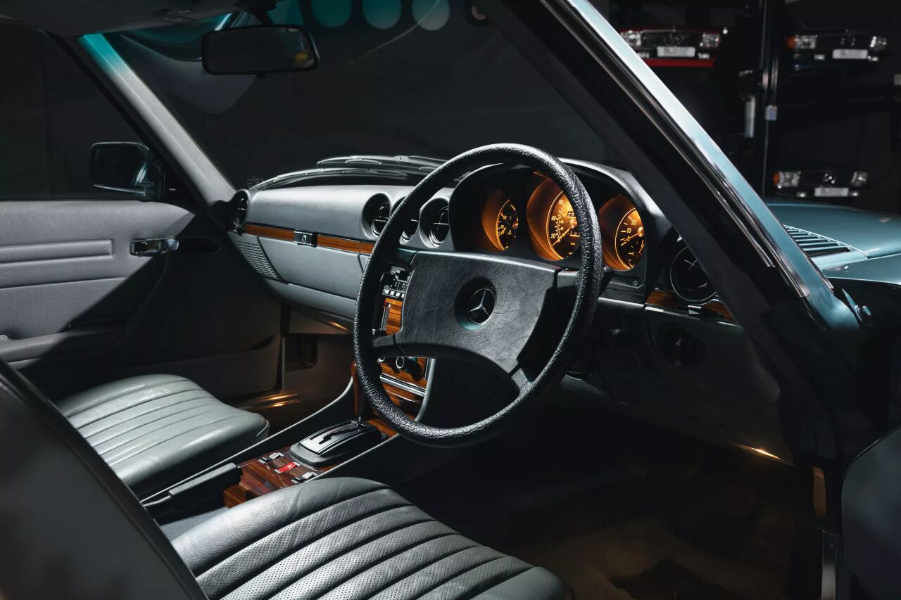 如今,当你坐进车内,扑面而来的不是岁月的气息,而是八十年代梅赛德斯最纯粹的工艺气味:木饰散发淡淡香气,真皮座椅仍然紧致柔滑,仪表盘的字体、按键阻尼、甚至空调旋钮的声音,都让人瞬间回到一个机械与品味并存的时代。那时的奔驰,讲究的是“德意志严谨与过度工程化”,一辆车可以开上几十年,依然如新。