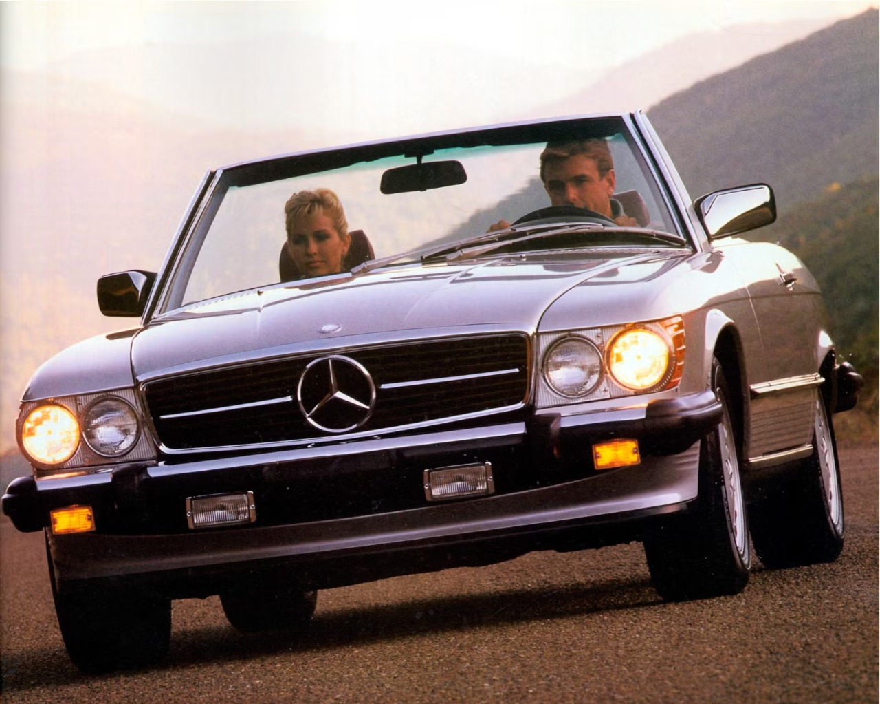 到1980年,奔驰为其推出了顶级版本——500 SL。搭载5.0升V8发动机,输出237马力(240PS),匹配四速自动变速箱,动力平顺、扭矩浑厚,是当年欧洲市场最尊贵的SL之一。它象征着地位与成功,是那个年代“绅士的梦想座驾”。
