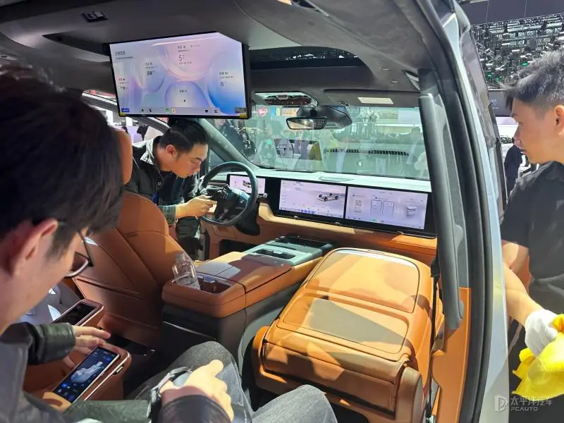 剧院式座椅布局和超开阔车窗,进一步增强了舱内的开阔感。在保证第二排舒适坐姿的前提下,将第三排座椅放倒即可收纳 3 辆 26 寸自行车。即使在三排满座的情况下,后备箱依然可以容纳 7 只 20 寸行李箱和 7 个双肩包,或能放置 4 套高尔夫大球包或 4 套专业钓具,后备箱容量 630L~2056L 可拓展。新车采用二三排独立长滑轨设计,其中三排搭载行业首创的 330mm 超长电滑轨。这一设计使车内空间配置更加灵活,可适应不同乘坐和互动场景需求。