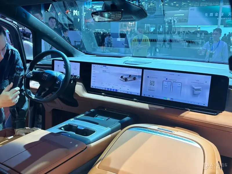内饰方面,别克至境世家采用了全新的设计,配备由 10.25 英寸液晶仪表、16.3 英寸中控屏和 16.3 英寸副驾娱乐屏组合三联屏布局,搭配 50 英寸 AR-HUD 抬头显示,座舱搭载高通最新一代 8775P 芯片,AI 算力 72 TOPS,内置有 AI 大模型语音助手,能通过语音指令完成 700 多项车控功能。