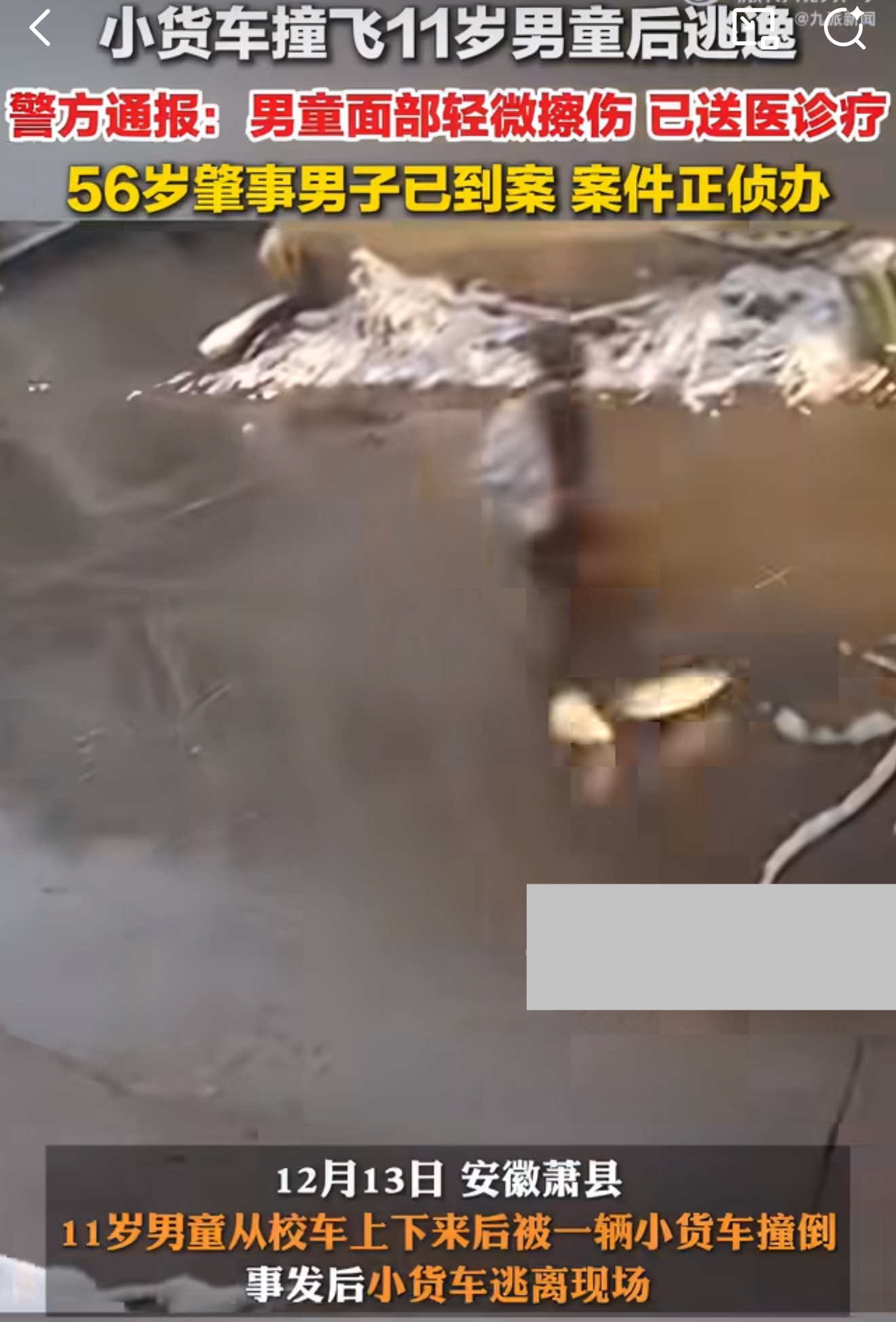 清晨的马井镇道口村,本该是孩子们背着书包蹦跳上学的画面,可12月13日6点55分,一声刺耳的撞击声撕破了这份宁静——一辆小货车像失控的猛兽,将刚下校车的11岁男孩张某某撞飞数米远,更令人愤怒的是,司机陈某连刹车都没踩,一脚油门扬长而去,只留下躺在血泊里的孩子和惊慌失措的围观群众。