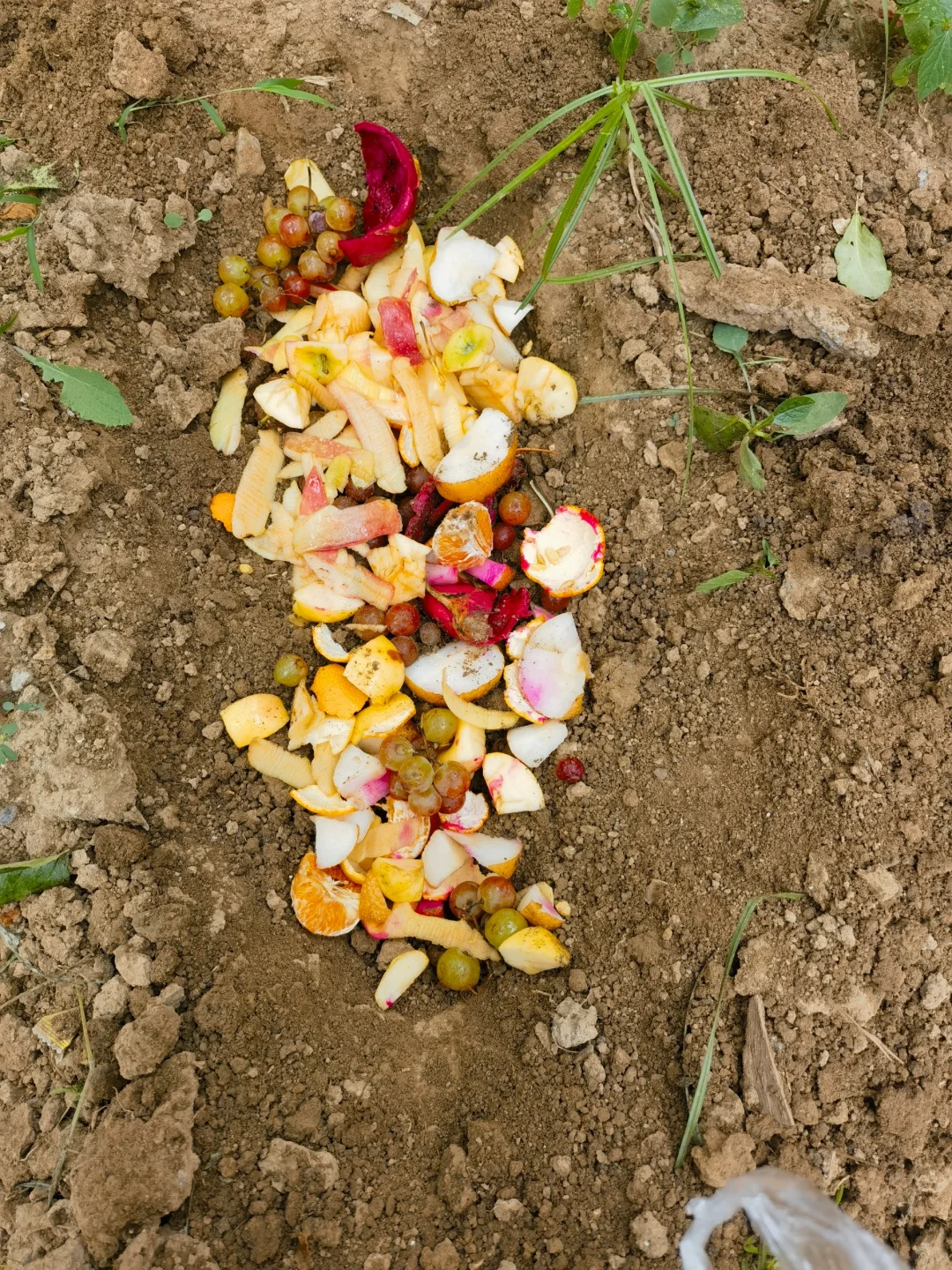 也可以直接将吃不完的水果以及烂掉的果肉挖个坑埋在土里,等着自然腐化变成花肥。