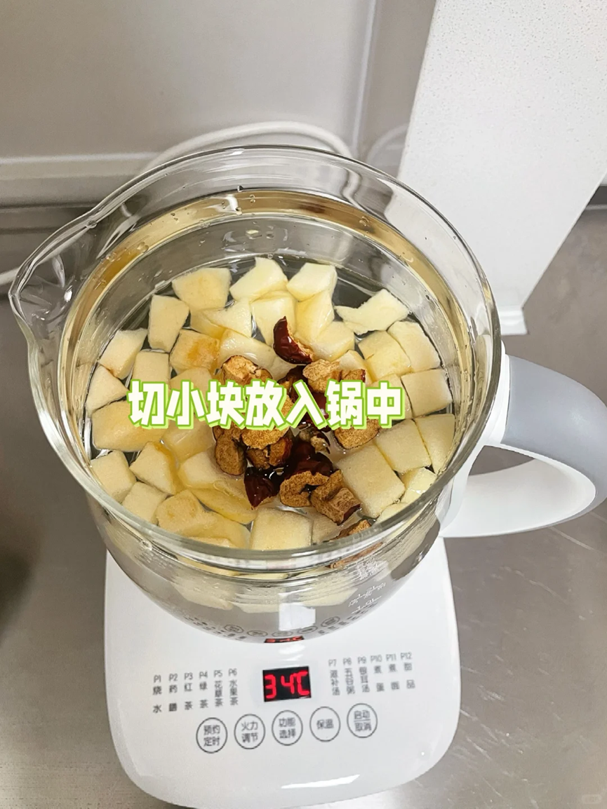 只需要将苹果去皮切块,然后再准备一些红枣和红糖,将其放进养生壶当中,搅拌,煮开之后就可以品尝了。
