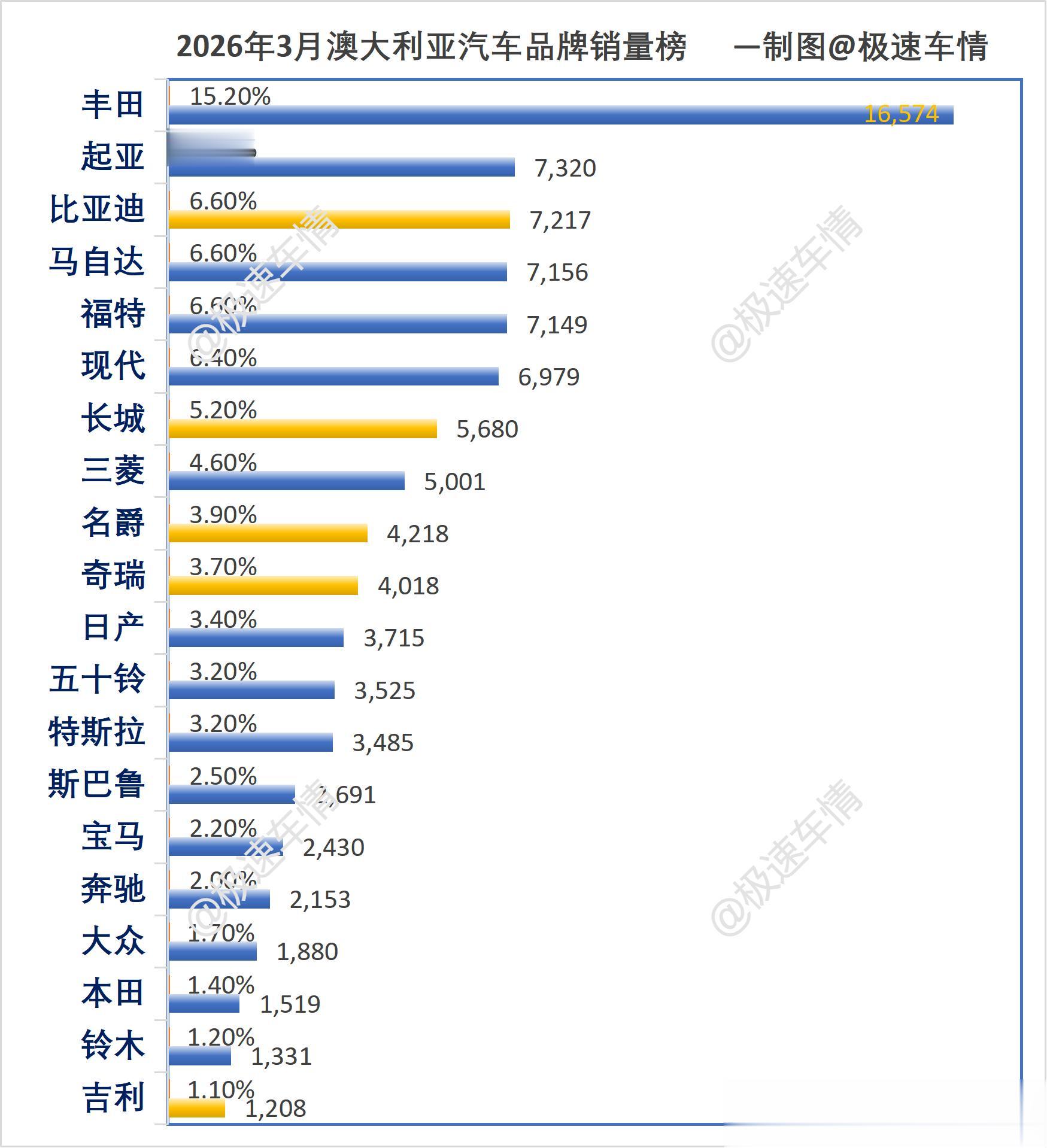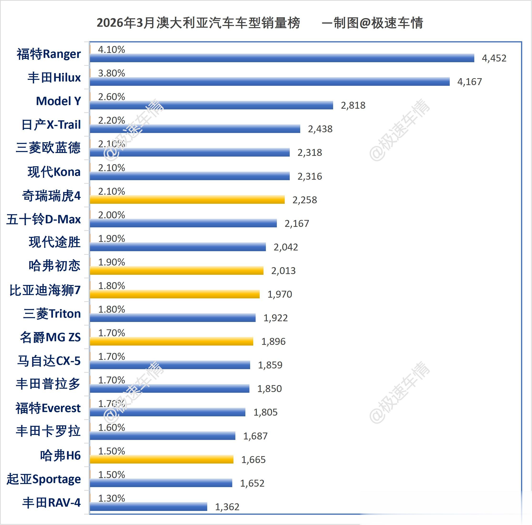 大家好,这里是极速车情。今天为大家带来澳大利亚汽车市场2026年3月的销量数据报告。