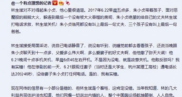 大火夺走了年仅34岁的朱小贞和三个孩子的生命,也让无数网友痛心同情,也让人认识了在火场下哭得声嘶力竭的林生斌。