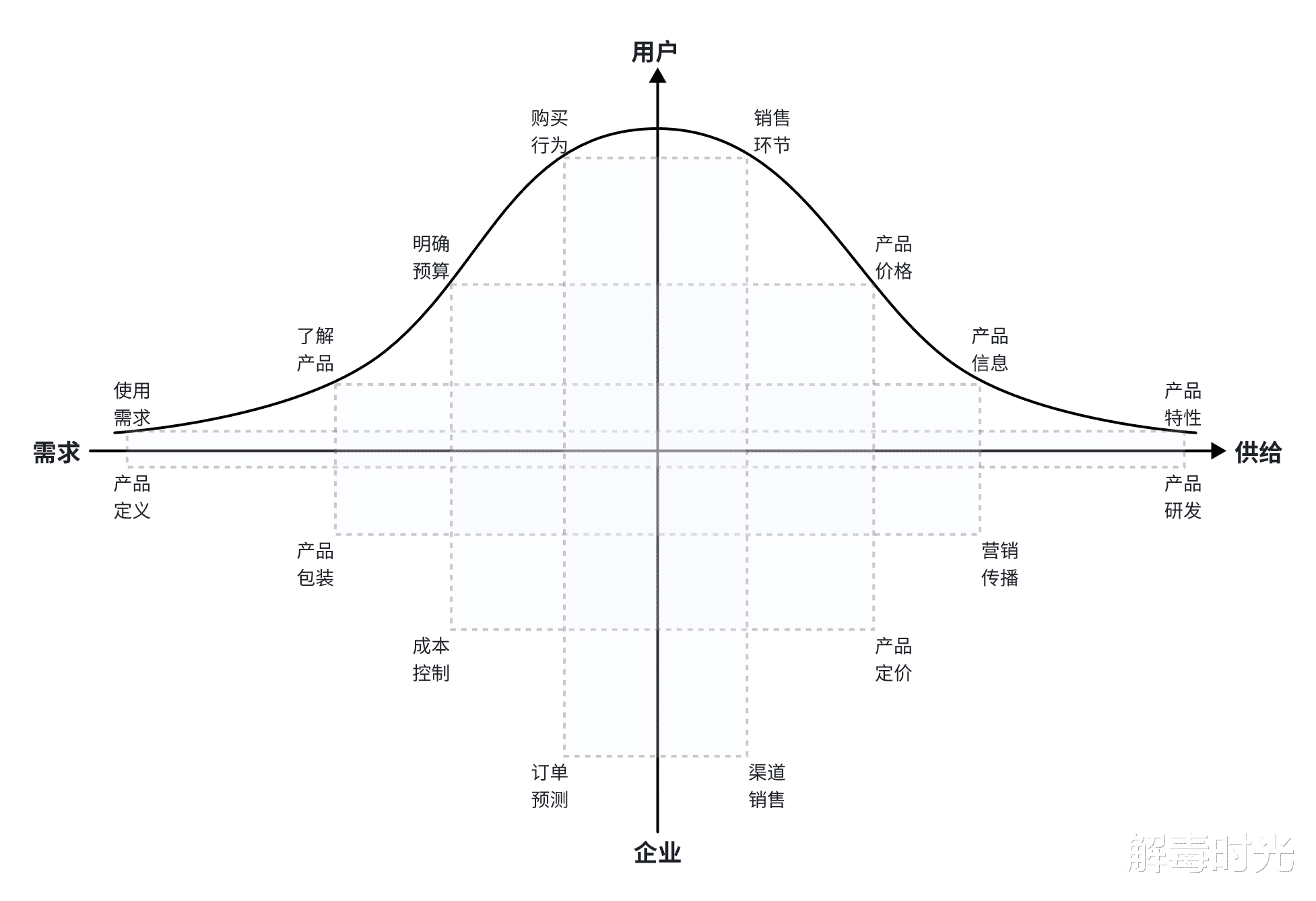 首先,市场的存在核心是对于某一类人的需求的满足,在用户层面有一种“使用需求”的产生,就对应着市场上的一种“产品特性”的提供,而另一面在企业层面要做的就是对用户需求研究产出“产品定义”,以及对供应产品的研发。