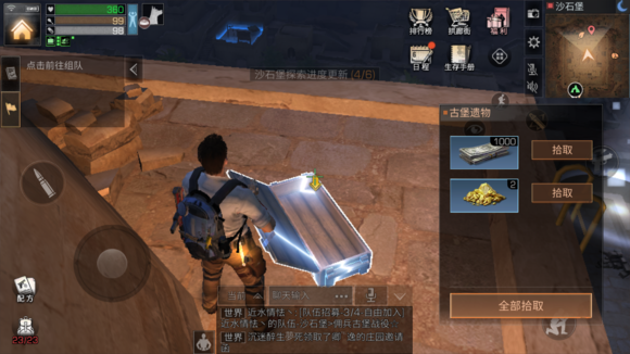 然后看看沙石堡的重度感染区,这里有四个箱子,可以单人去引怪偷,对这怪开枪拉仇恨,然后把怪吸引到高地,你就可以跳下去开箱子了,时间充足,不用害怕怪回来。据玩家测试反馈,这个地方现在一天只能拿到一个薄膜或一个高分子了,有些玩家说在重度感染区开箱子从来没有开出这些材料,其实这个还是有点看运气的。建议大家开箱子洗洗手哦!哈哈!