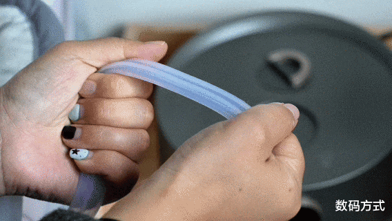 而水管给我的感受则是触感柔软而有韧性,官方资料显示这是 “双层加厚抗磨损抗拉扯的母婴食品级管路” 。我尝试反复弯折,它都能迅速恢复原状,没有变脆或出现白痕,第一印象就是可靠。