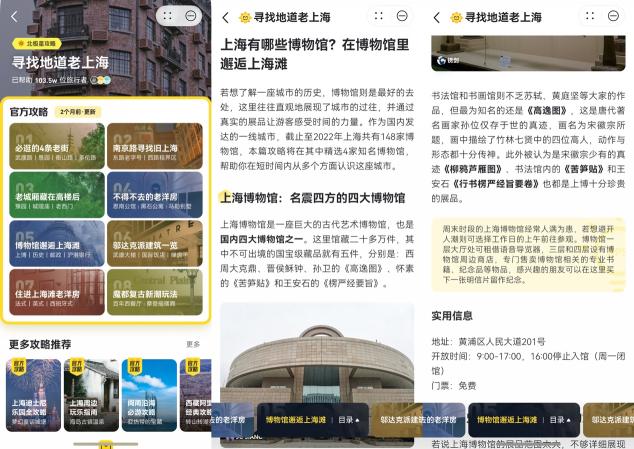 想要参观景区,强烈推荐大家试试马蜂窝元服务!它的上海板块攻略做得特别细,还分了不同风格的参观路线,不管是想寻找南京路上的旧上海,还是想体验上海周边的古镇、温泉,都能找到相应的内容。比如我选择了去上海博物馆,马蜂窝元服务不光给核心展品做了生动的简介,连怎么逛、馆里有哪些服务,都有清晰介绍。有了这个,完全不用自己费劲做攻略,跟着走就行。