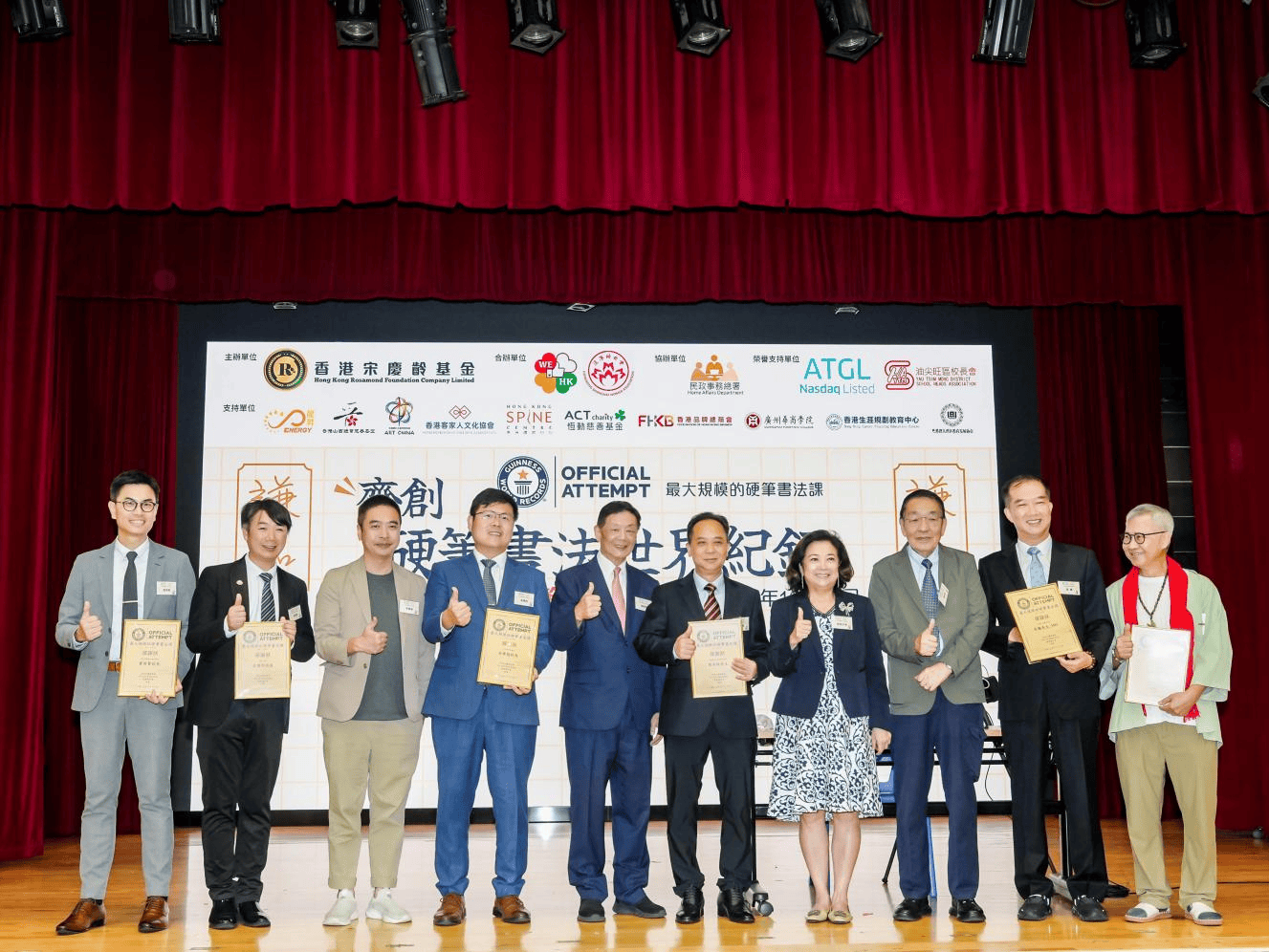 挑战结束后,在经过严格的数据核实与流程审核后,健力士世界纪录TM认证官正式宣布本次活动成功创造新世界纪录。随后,香港宋庆龄基金创会会长胡晓明教授及副会长孙伟勇先生、We like Hong Kong董事冯家彬先生及丁午寿先生、沪港妇女会主席胡梁子慧女士及创会会长荣吴佩仪女士共同从认证官手中接过世界纪录证书。这份沉甸甸的证书,不仅是对本次活动的肯定,更是香港青少年传承中华文化的有力见证。
