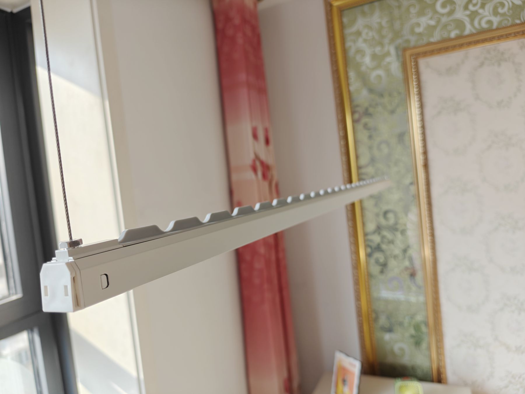而且它的无线遥控 + 独立升降真的绝!晾杆上升至距主机 10% 行程时会自动悬停,防止衣架磕碰,长按 3-5 秒即可完全收合。24W 大屏 LED 灯集成于主机中央,替代阳台主灯毫无压力,晚上晾衣服时也很轻松。 我现在每天躺在沙发上就能一键控制升降,再也不用弯腰仰头,搬凳子够高处的衣服了,晒小件衣物的时候只降一边,大件床单被罩就两边同时升,这个设计真的太方便了。阳光能把每个角落都照顾到,阴雨天也不用担心衣服干不了了,晾完的衣服软软香香的,再也不用担心梅雨季衣服晾不干有异味。