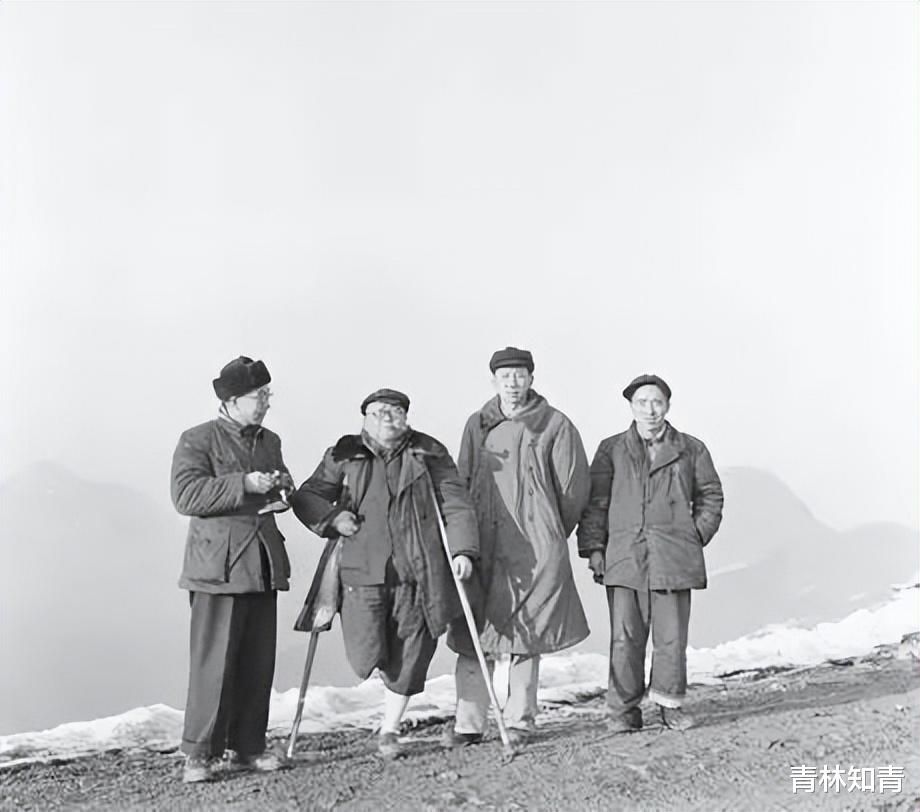1957年1月16日,潘光旦(左二)在湖北来凤县绿葱坡顶