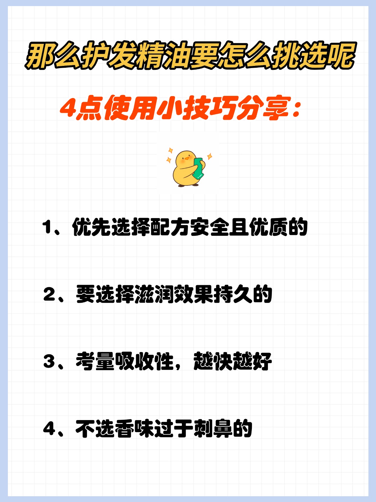 很多人都不知道,护发精油究竟是涂在发根还是发梢?其实,正确的涂抹位置对于修复效果非常关键。一般来说,护发精油更多是涂抹在发梢,因为发梢更容易干枯毛躁,缺乏足够的营养和水分。而发根部分的油脂分泌本身就比较多,如果涂得过多容易导致头皮油腻甚至堵塞毛孔,造成脱发问题。护发精油的使用要根据发质和发根的油脂情况来调整。涂抹后是否需要吹干也成了很多人关注的点,事实上,大部分护发精油在涂抹后不需要吹干,尤其是一些轻盈配方的精油,效果会更加自然。接下来,我会总结一下选购护发精油时需要注意的几个关键点,大家可以参考一下。