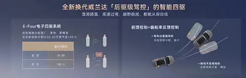 如果偶尔想去郊外轻越野,这款车的E-FOUR电子四驱系统能提供不错的支持。通过域控制器升级,扭矩调节范围更广,可实现前后20:80、左右0:100的分配。