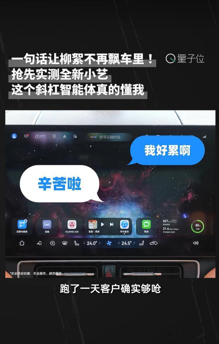 当用户告知自己感觉有点累的时候,小艺会根据用户的专属习惯,帮忙开启座椅按摩、播放喜欢的音乐,甚至化身“知心朋友”进行情绪开导。如果有儿童乘车时,车主还可以让小艺切换至童声模式讲故事,让互动充满情趣。