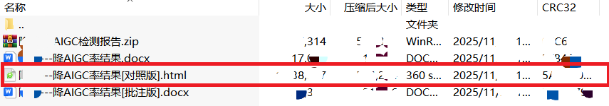 下载降重报告后,降AIGC率结果[对照版].html文件可在线与原文同屏对比和在线润色修改。