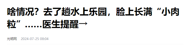 信息来源:啥情况?去了趟水上乐园,脸上长满“小肉粒”……医生提醒→——光明网2024-07-25