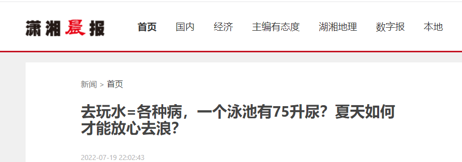 信息来源:去玩水=各种病,一个泳池有75升尿?夏天如何才能放心去浪?——2022-07-19潇湘晨报