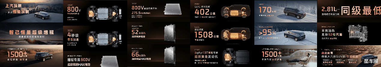性能方面,恒星超级增程彻底打破了“增程车亏电就拉胯”的刻板印象。我们特意查了官网数据,CLTC纯电续航402km,综合续航1508km,油电综合折算能耗2.81L/百公里,比同级的理想L8(综合续航1315km,能耗5.9L/百公里)强了不止一点。更关键的是极端环境表现,官方测试显示,在-30℃极寒地区,LS9的续航衰减比竞品少15%;在海拔4500米的高原,动力输出依然稳定,不会像某些增程车那样“缺氧”。800V架构+双电机矢量四驱,零百加速4秒级,开起来的推背感,比我之前试驾的3.0T燃油车还猛,却没有燃油车的顿挫和噪音。