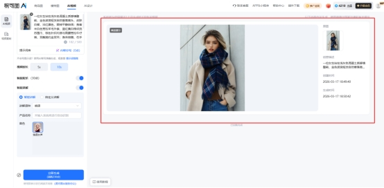 先说商品展示模式,它的逻辑很简单:上传一张商品图,再输入简单的提示词,就可以生成一个5秒或10秒的动态视频。AI会自动帮你做镜头变化、画面动效,还可以加文字、配音和背景音乐。对于没有视频素材的卖家来说,这一步直接解决了“没视频可发”的问题。