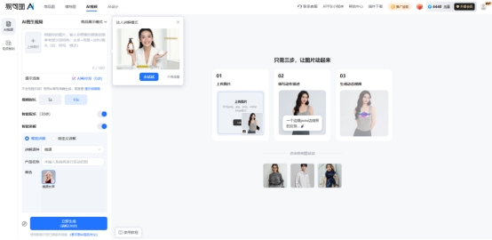 如果你是做电商或者短视频内容,易可图的AI图生视频功能是目前比较实用的一类工具,尤其适合新手快速起量。